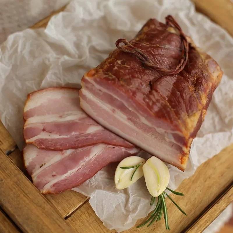 Бекон по технологии RAPID это сочетание приятного ветчинного вкуса со структурой нежного мяса. Наш бекон коптится исключительно на щепе фруктовых деревьев с преобладанием вишни, яблока и сливы. Для достижения равномерного вкуса, мы не торопимся выпускать продукт, а просаливаем и коптим его так, чтобы вкус был в каждом миллиметре нашего нежнейшего кусочка бекона. Никакой химии, жидкого дыма и вредных веществ. Холодное копчение производится с конденсацией вредных веществ вне коптильной камеры, потому что вкусное может быть не только вкусным, но и не вредным для здоровья (главное не переедать).