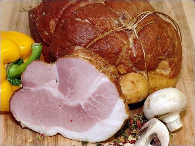 Нежная отборная свинина с прослойкой жира, придающей дополнительную сочность. Продукт коптится на натуральной фруктовой щепе. Окорок имеет особенно нежную мраморную и сочную структуру, обладает натуральным мясным ароматом и нежной мягкой корочкой.
